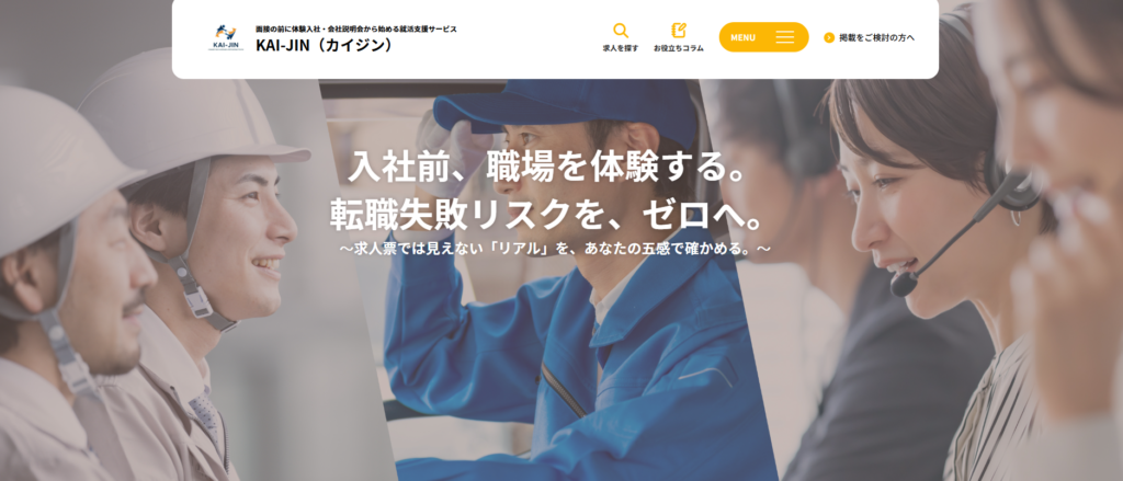 KAI-JINは、単なる求人メディアではなく、企業と求職者が「体験」を通じて深く関わり 、入社後のミスマッチを解消する「Trial Work as a Service (TWaaS)」プラットフォームです 。